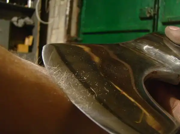 ВАЖНО: перед тем, как срезать режущую кромку (если это понадобится) - убедитесь что топор НЕ из составных частей.