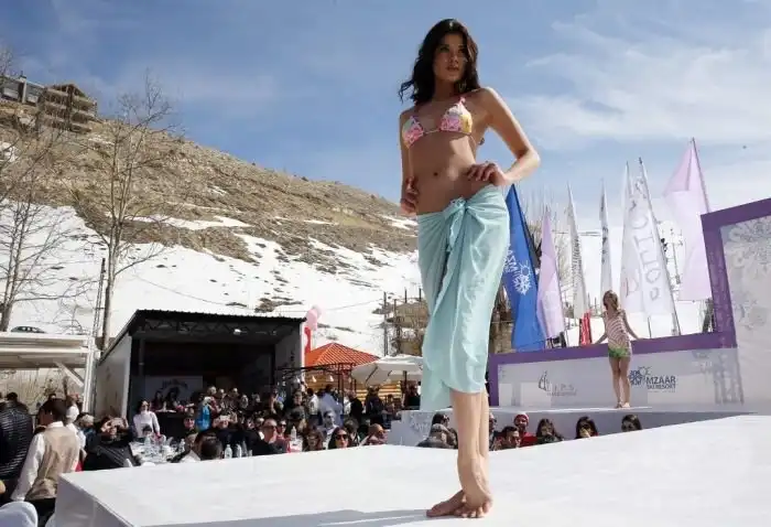 В Ливане на горнолыжном курорте Фарайи прошло ежегодное шоу «Лыжи и мода», в рамках которого состоялся показ нижнего белья от бренда Diamony. Полуобнаженные модели вмиг покорили зрителей, которые по достоинству оценили недешевые белье и самих девушек.