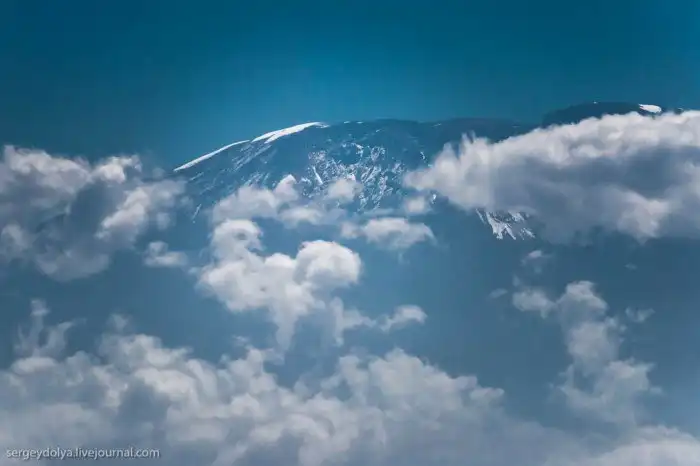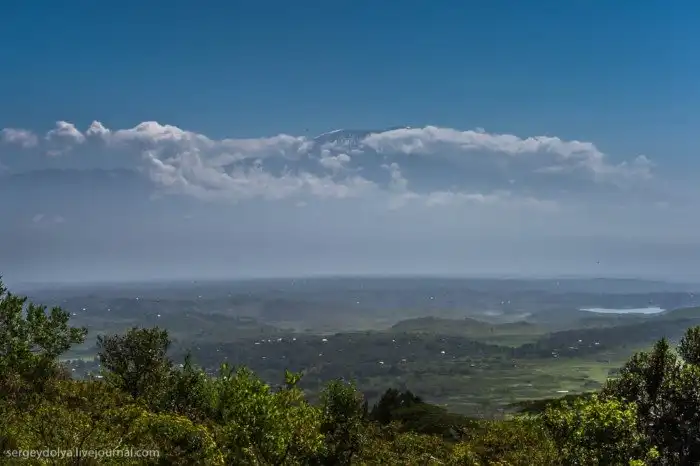 Поднялись немного на гору. Отсюда уже виден пик Килиманджаро: