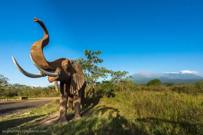 На въезде в парк стоит эффектная статуя слона. Правда, забегая вперед, скажу что таковых мы не обнаружили