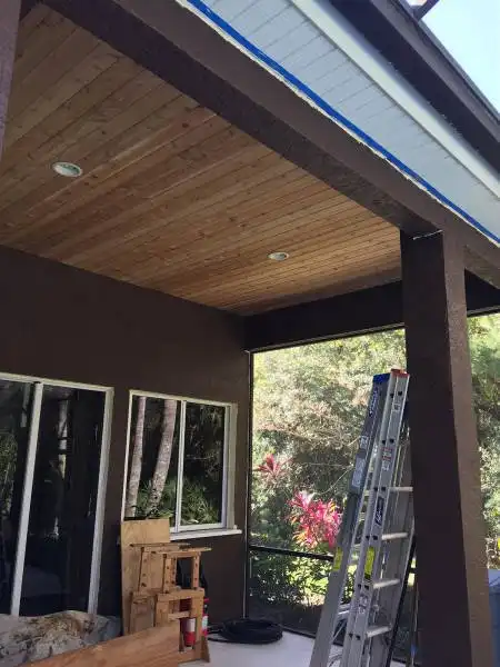 Отец с сыном решили превратить крыльцо своего дома в зону для отдыха, где они могли бы выпить немного спиртного и просмотреть футбольный матч любимой команды. Далее предлагаем взглянуть на процесс создания подобной зоны отдыха, которая понравится любому мужчине.