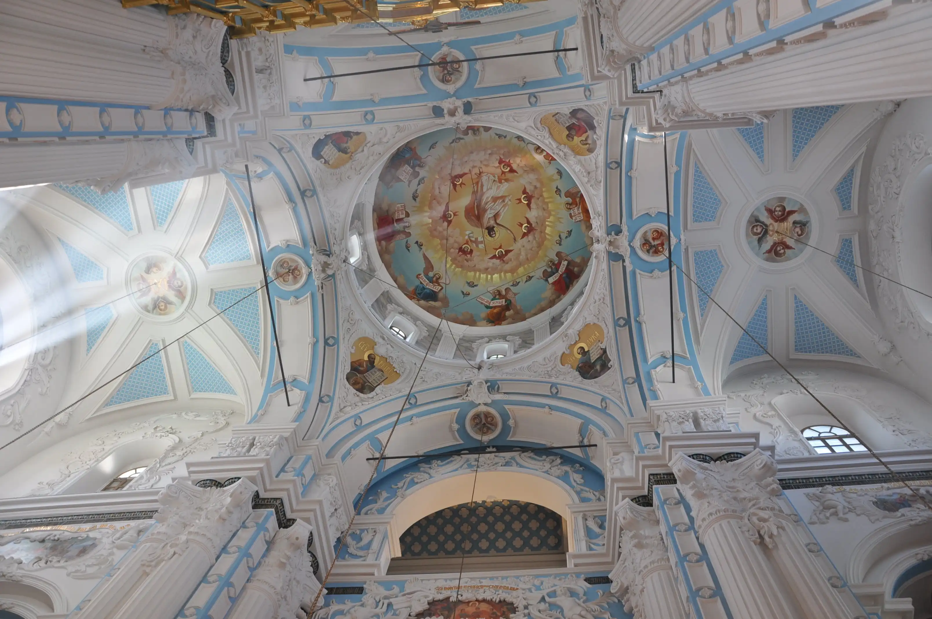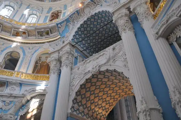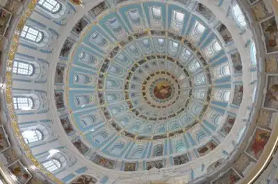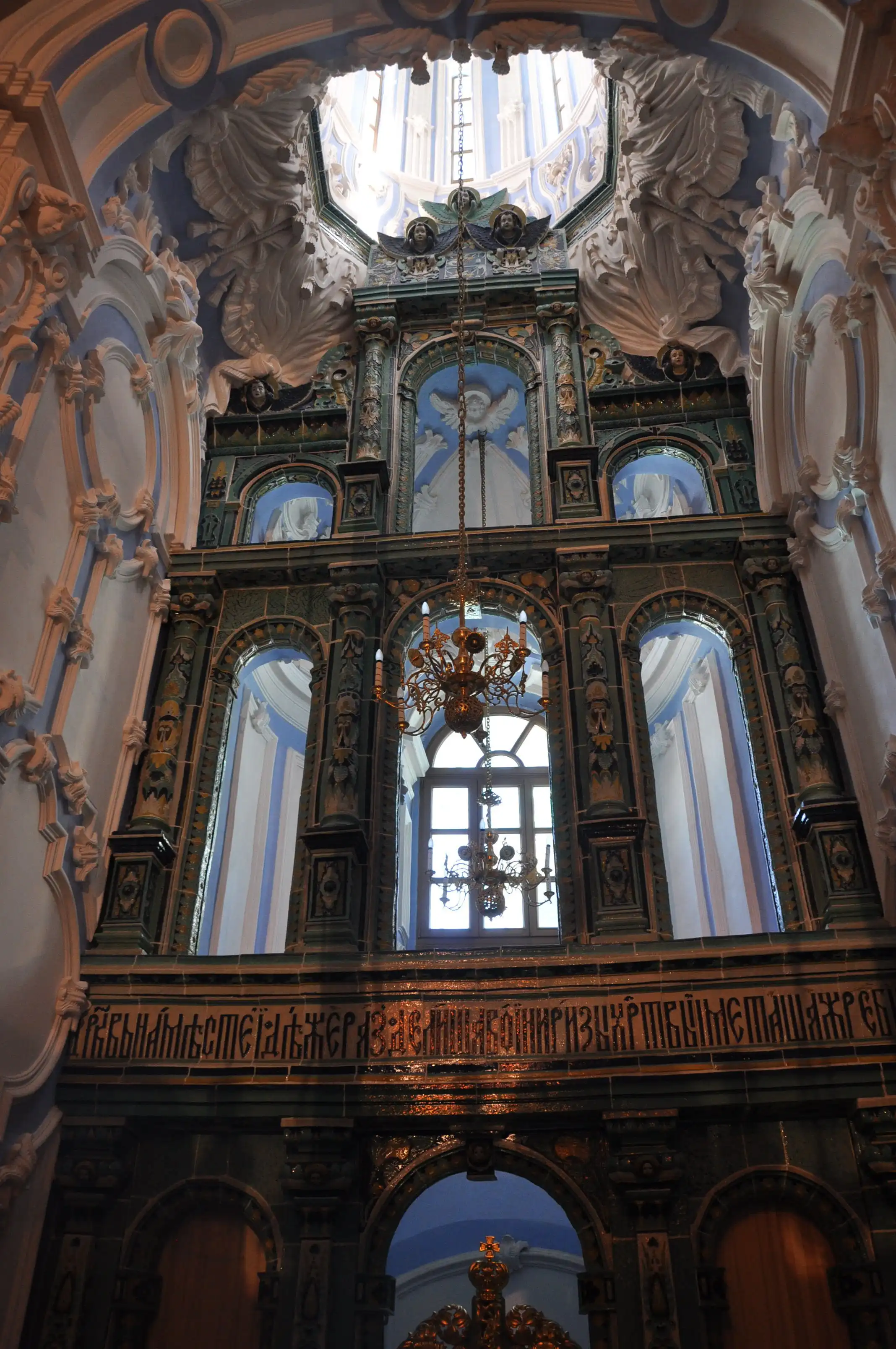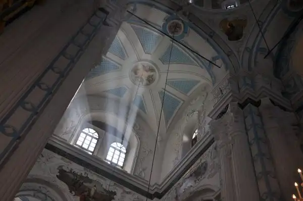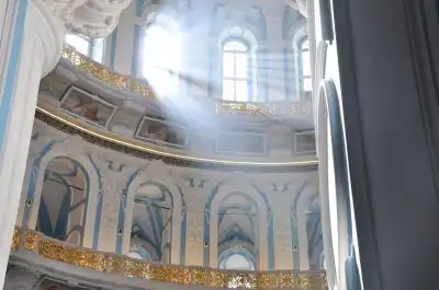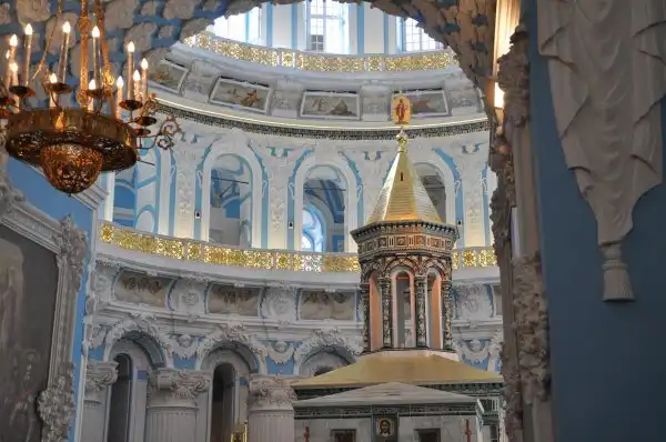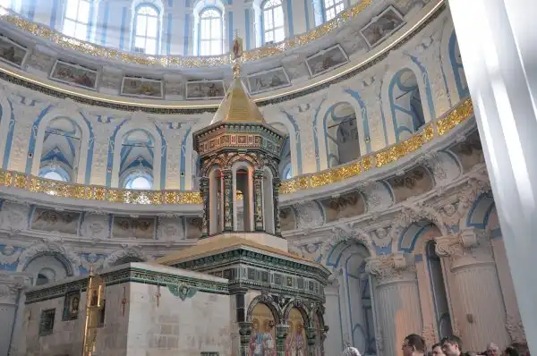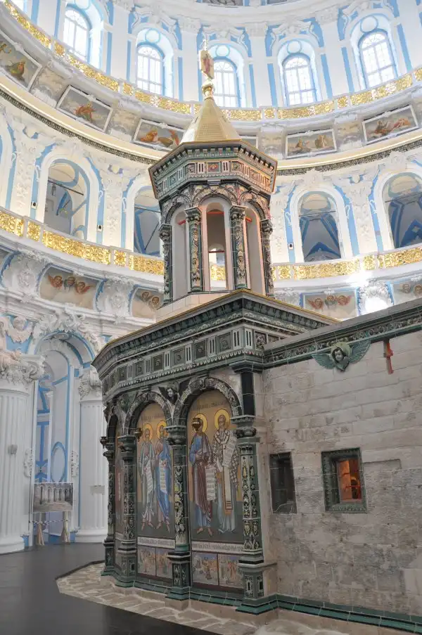 В ротонде Воскресенского собора, повторяя храм Гроба Господня в Иерусалиме стоит храм в храме – Кувуклия, отмечающая место погребения Иисуса Христа.