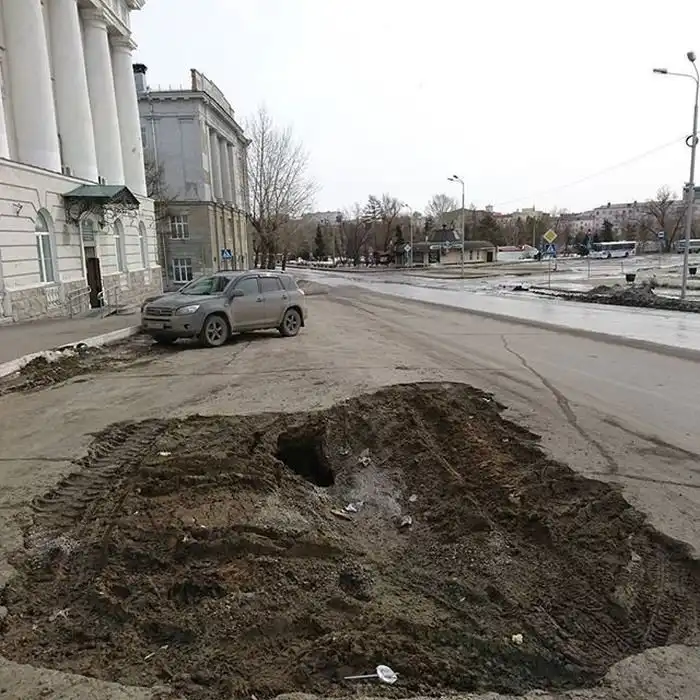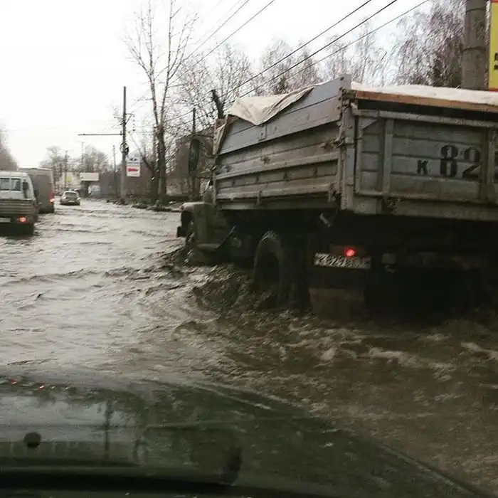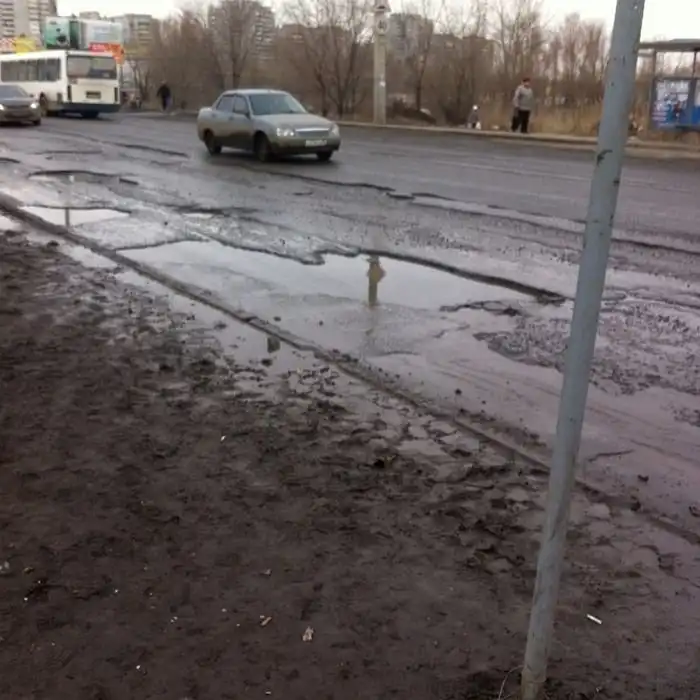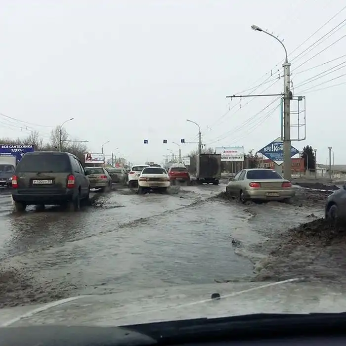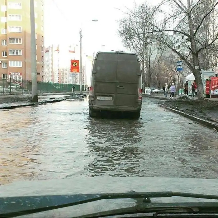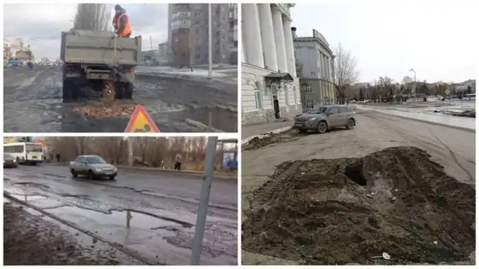 Из-за того что коммунальные службы не вывозили во время снег, омские дороги превратились в одну большую лужу. В некоторых местах, вместе со снегом сошел асфальт. Из-за всего этого местные жители не могут нормально передвигаться по улицам города.