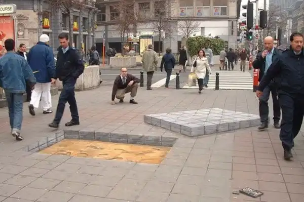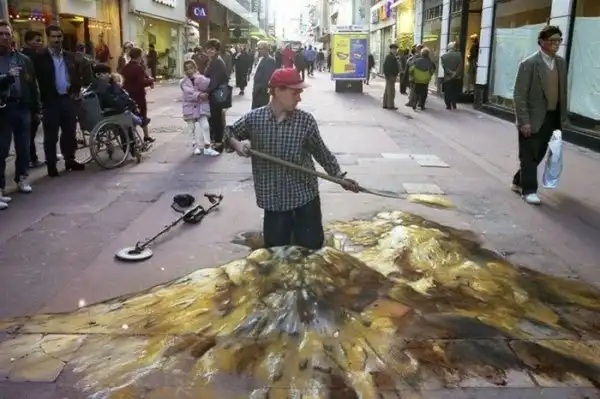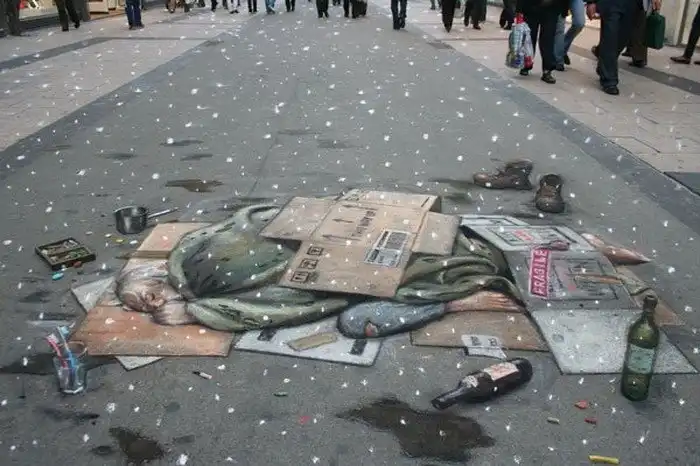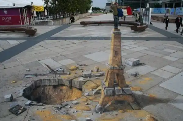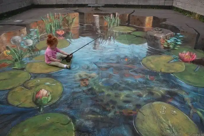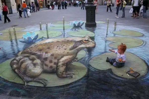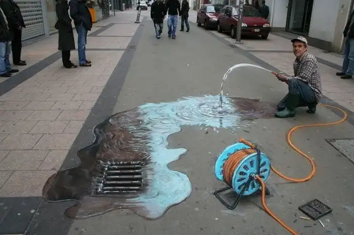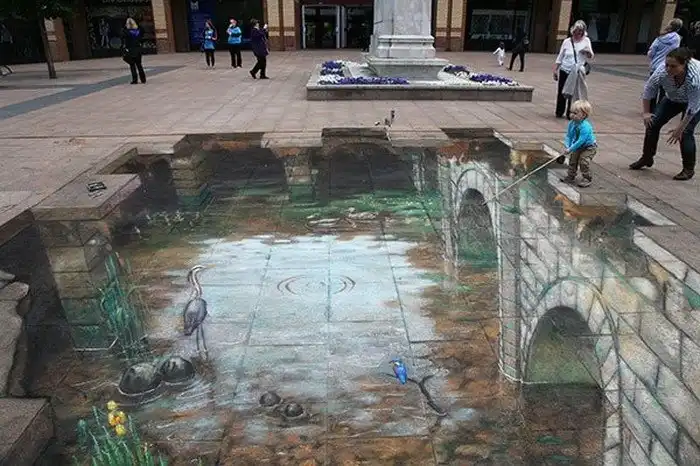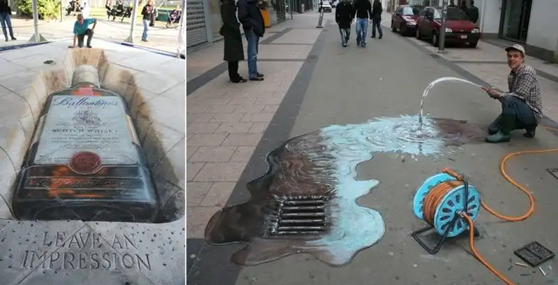 Джулиан Бивер талантливый художник, который в совершенстве овладел искусством создания оптических иллюзий. Мастер перспективы и креатива создает уникальные картины, используя принцип анаморфоза. Картины рисуются так, что рассмотреть их можно только с определенного ракурса. При этом они настолько реалистичные, что сложно поверить, что они нарисованы мелом на тротуаре.