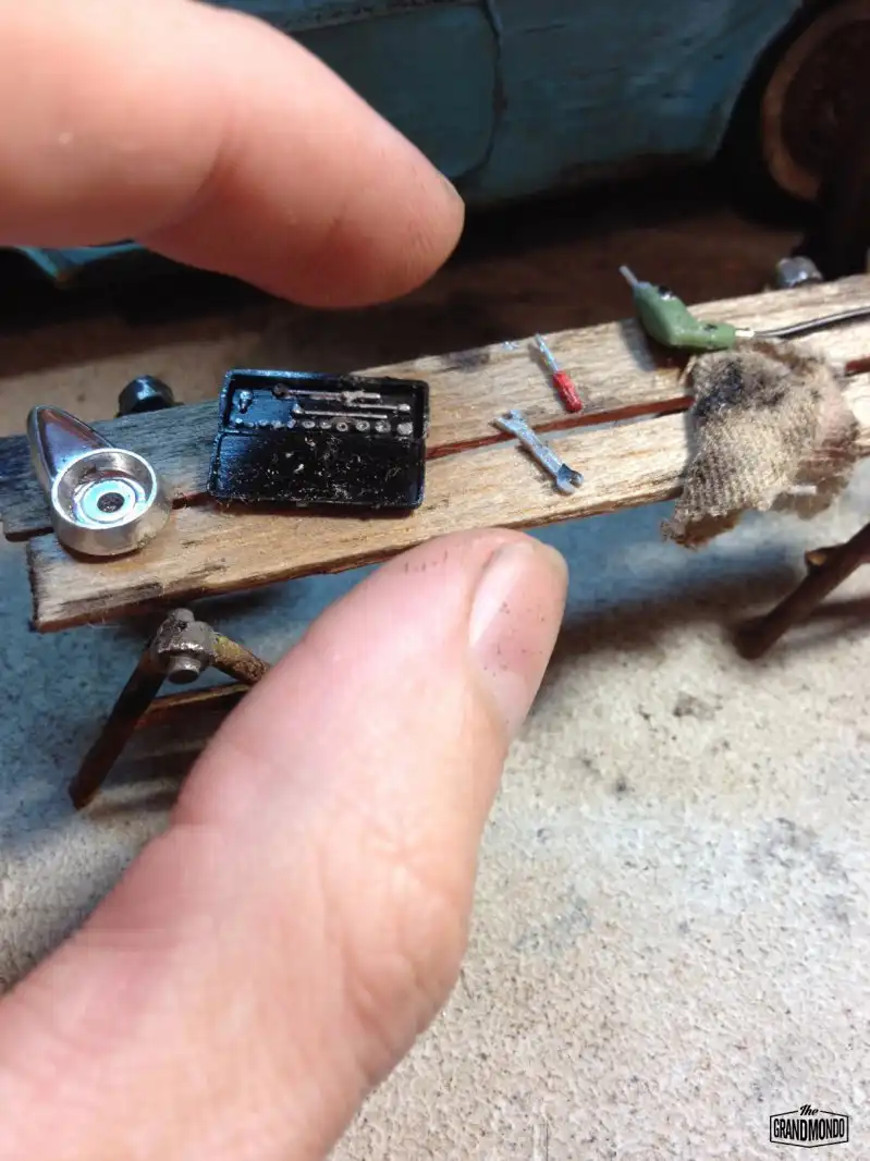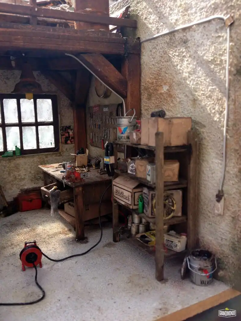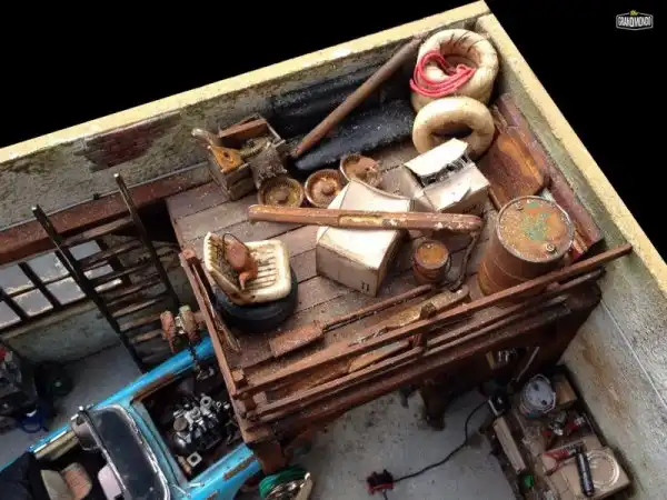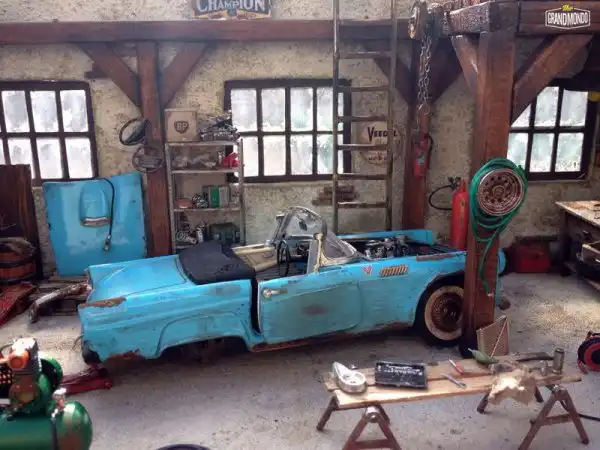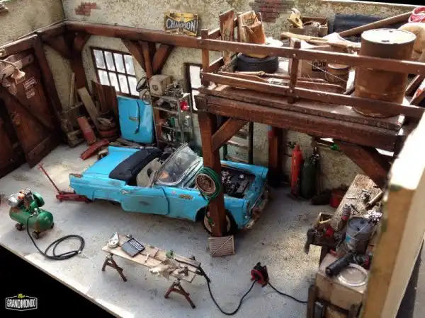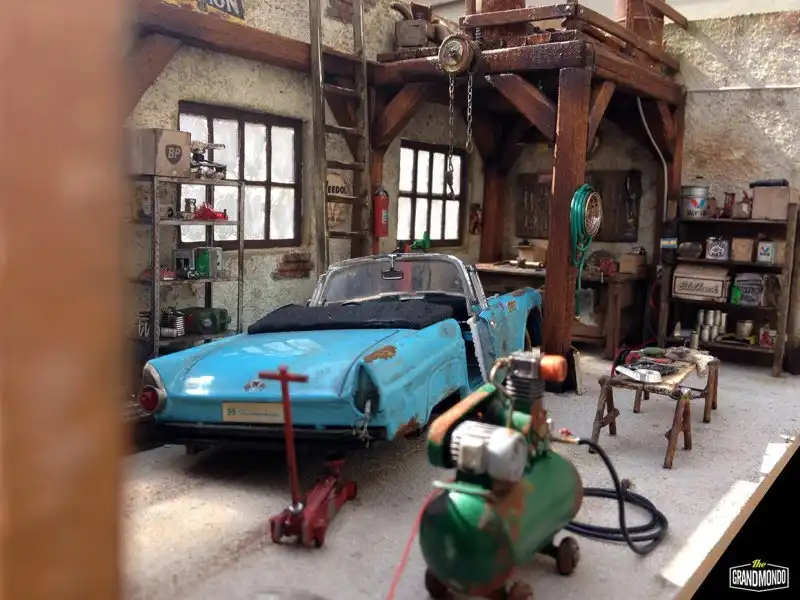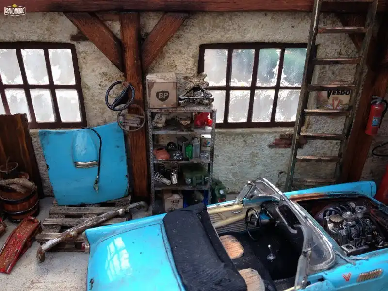 Вашему вниманию еще одна потрясающая диорама от мастера Raphael Truffi Bortoluzzi. В гараже можно видеть классический Ford Thunderbird Convertible 1955 года, ожидающий свою вторую жизнь.