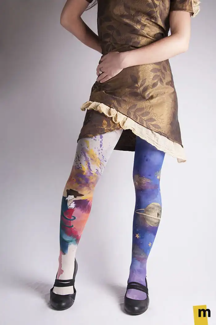 Вы бы хотели примерить картину? Художница и дизайнер Йована Стоянович дарит вам такую возможность! Девушка пишет свои фантазийные картины прямо на женских колготках и прочих чулочно-носочных изделиях. Вместе с сестрой Йована уже открыла собственную компанию под названием Movanas.