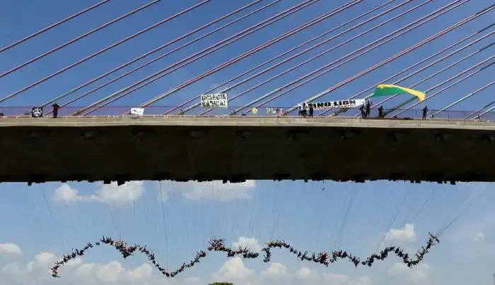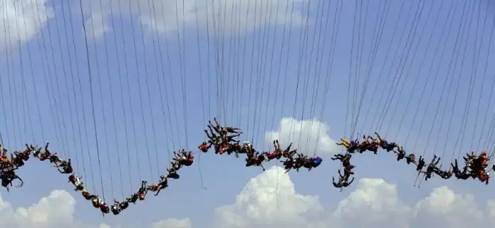 Бразильские экстремалы попытались совершить самый массовый прыжок в роупдажмпинге