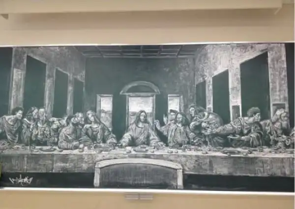 Наша строгая классная руководительница всегда следила за тем, чтобы доска была чиста. И регулярно напрягала дежурных по этому поводу. Интересно, была ли бы она так же категорично, если бы на доске были вот такие художества?
