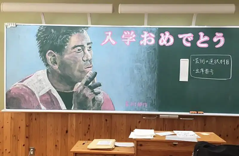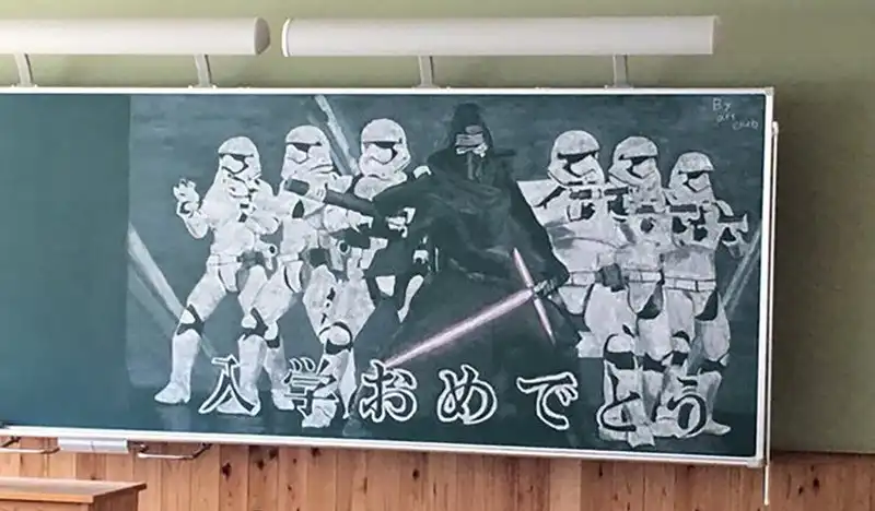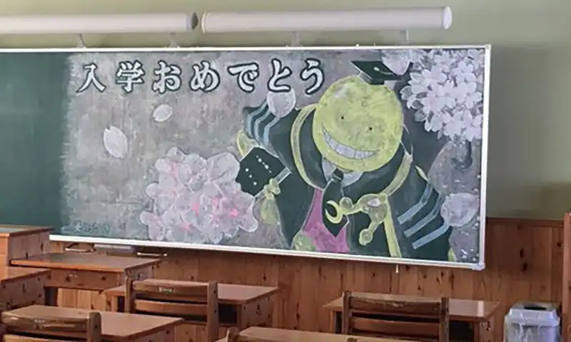 Японские школьники встречают учителей красочными рисунками на доске