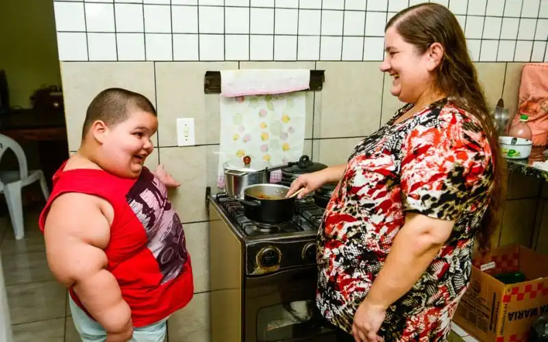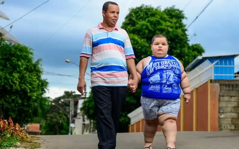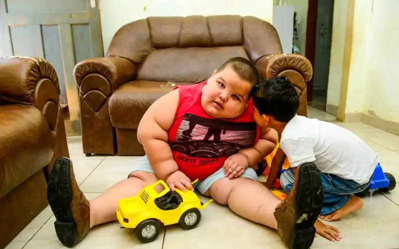 Пятилетний Мисаэль Калдонью Абру из бразильского штата Эспириту-Санту весит втрое больше своих сверстников. Причиной тому синдром, из-за которого пацан вынужден постоянно есть. Вес его уже достиг 80 кг, а при таких раскладах высока вероятность, что собственный вес задушит богатыря.