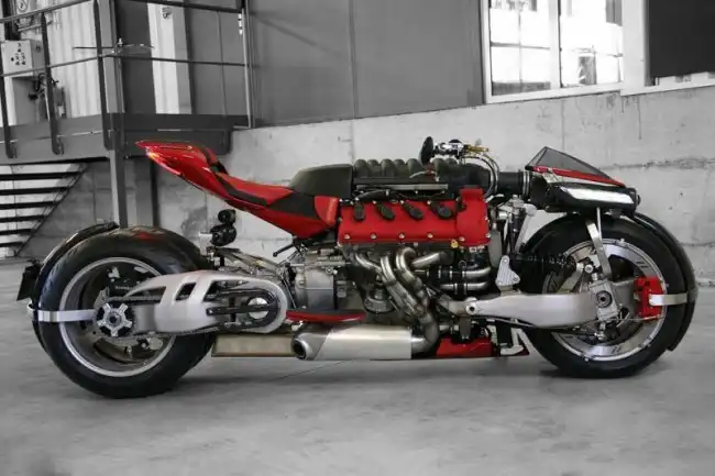 Любой кто наткнется на 32-клапанный двигатель от Мазерати V8 4,7 л. никогда не додумается построить "вокруг" этого 470 сильного двигателя мотоцикл. Но известный французский кастомайзер Людовик Лазарет, который занимается модификацией велосипедов, автомобилей и мотоциклов и известен своими экзотическими проектами. Так и в этот раз Лазарет построил мотоцикл LM 847 с двигателем Мазерати, весом 400 кг, и мощностью в 475 лошадиной силы.