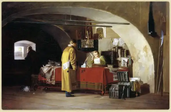 В 1675 году атаман Иван Сирко, взявший ранее Арслан и Очаков, вместе с запорожскими казаками писал ответ турецкому султану. Турецкий султан предложил казакам сдаться. Письмо гусиным пером писал бурсак – студент семинарии. Что именно написать, ему диктовал атаман.