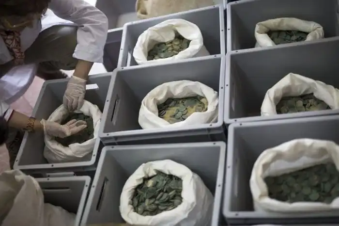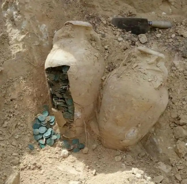 Во время строительных работ, которые проводились в городе Томарес, Испания, рабочие наткнулись на древний клад. Случайно разбив один кувшин с монетами, строители обнаружили множество других кувшинов, которые также были наполнены монетами. В общей сложности было найдено около 600 кг медных и серебряных монет, датированных III - IV веком нашей эры. По словам экспертов, деньги никогда не были в обращении и на то время являлись огромным состоянием.