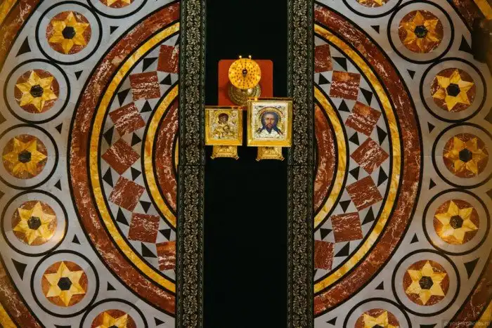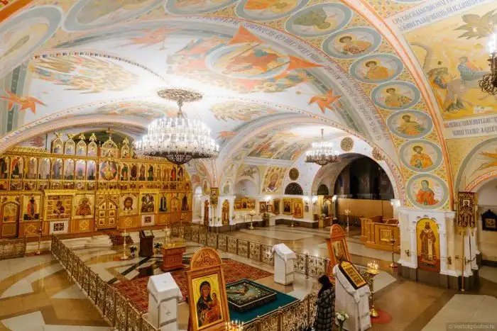 Внутреннее убранство Преображенской церкви Храма Христа Спасителя ориентировано на древнерусские традиции.