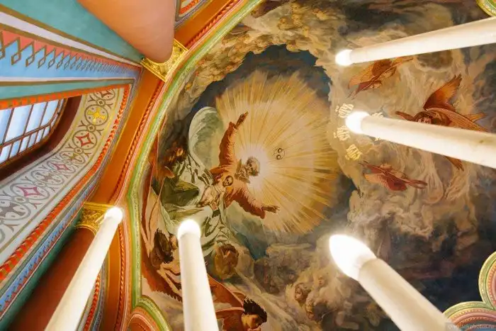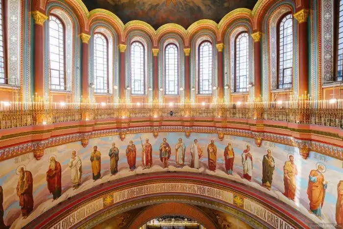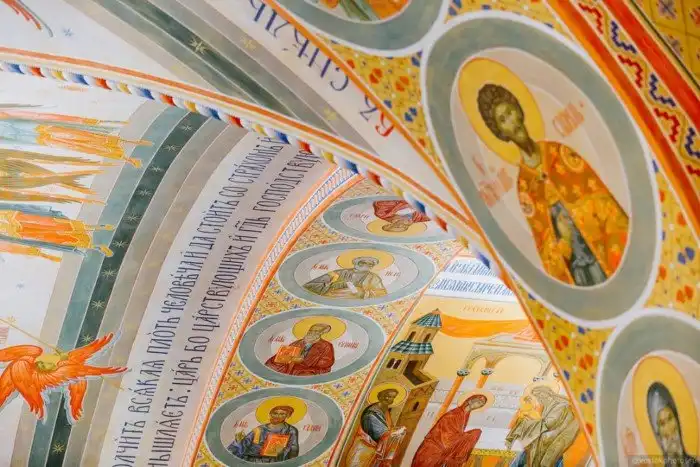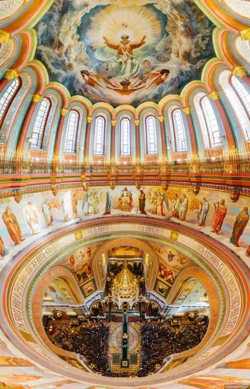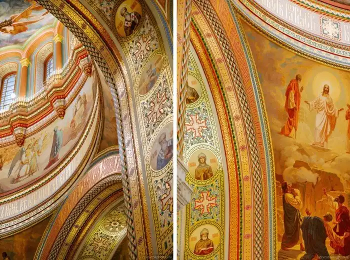 В воссоздании росписей храма принимали участие более 400 художников, а общая площадь росписей составила около 22 000 кв.м. Это примерно как площадь двух футбольных полей.