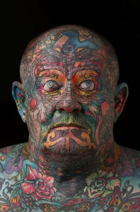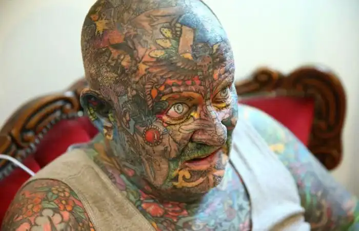 Бывший австралийский гангстер Джон Кенни (John Kenney) из Мельбурна покрыл татуировками все свое тело, включая веки и даже язык. В молодости он был сутенером и наркоторговцем, в результате чего сам пристрастился к наркотикам. Татуировками 60-летний Джон увлекся еще в 18 лет, однако идея полностью покрыть ими тело пришла ему уже в зрелом возрасте. Сам Джон говорит, что очень любит рисунки на своем теле, так как они помогают без лишних слов рассказать о его сложном детстве и прожитой впустую молодости.