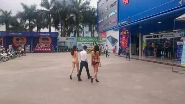 Один из вьетнамских магазинов электроники нашел отличный метод увеличения продаж товаров. Руководство попросту раздело продавщиц-консультантов вплоть до купальников. Уверен, что ни один мужик не сможет отказать полуобнаженной девушке и обязательно что-нибудь купит.