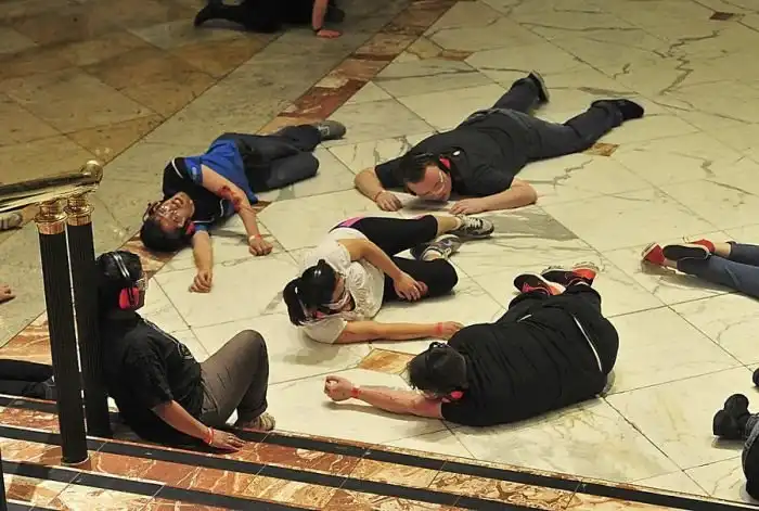 Полиции Великобритании пришлось приносить официальные извинения мусульманским общинам страны после проведенных в Манчестере крупных антитеррористических учений. В ночь с 9 на 10 мая в одном из крупнейших торговых центров страны отрабатывали сценарий нападения террористов. Помимо полиции, спецназа, скорой и прочих служб экстренной помощи в учениях приняли участие свыше 800 волонтеров. Людям выдали защитные очки и наушники, нарисовали на их теле раны, так как они должны были изображать убитых и раненных от подрыва террориста-смертника. Британские мусульмане были возмущены тем, что перед взрывом «смертник» прокричал «Аллах Акбар!» и заявили, что подобное дискредитируют всех мусульман. Далее предлагаем взглянуть на то, как проходили учения, только хотим напомнить, что кровь и раны вовсе не настоящие.