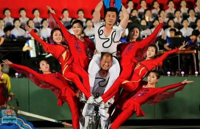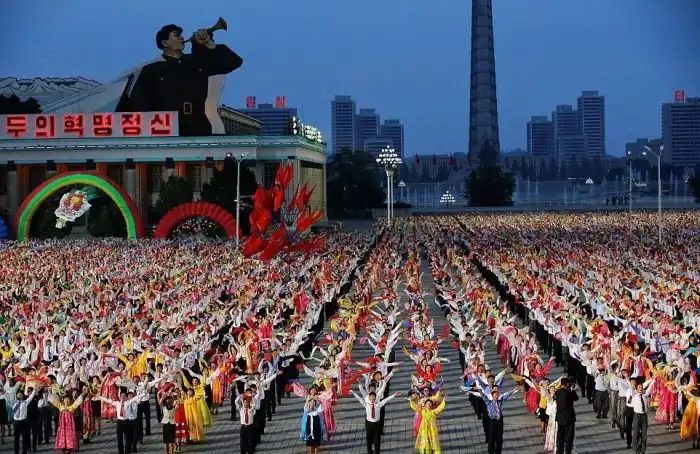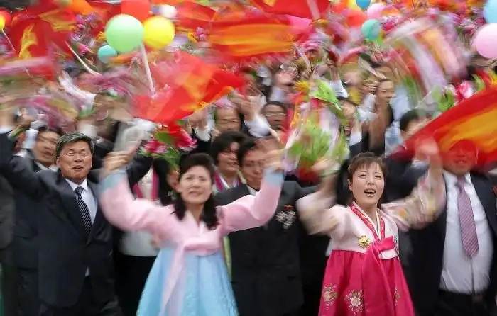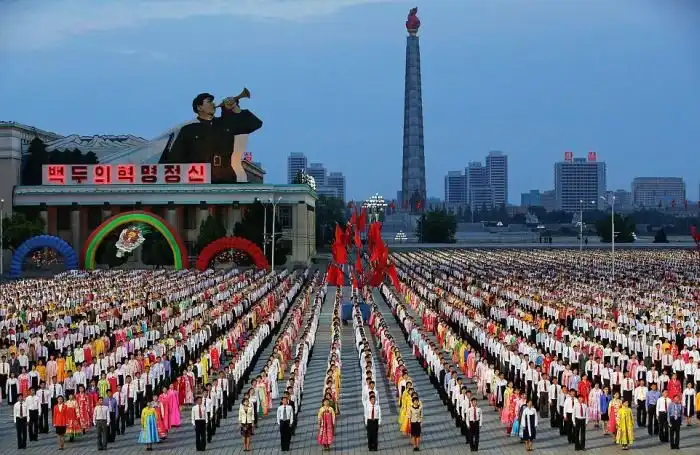 По случаю первого за 36 лет съезда Трудовой партии Кореи в Пхеньяне на площади Ким Ир Сена устроили грандиозный парад, участие в котором приняли сотни тысяч жителей страны. За яркими представлениями с участием танцоров и акробатов наблюдало высшее руководство КНДР во главе с Ким Чен Ыном. Как проходил парад, покажут фото из этого поста.