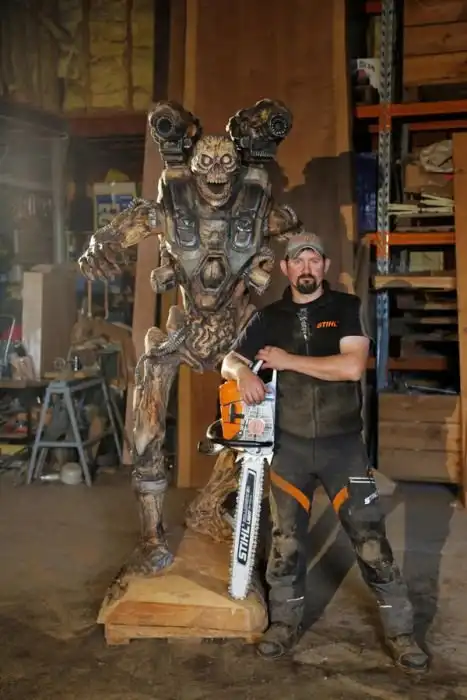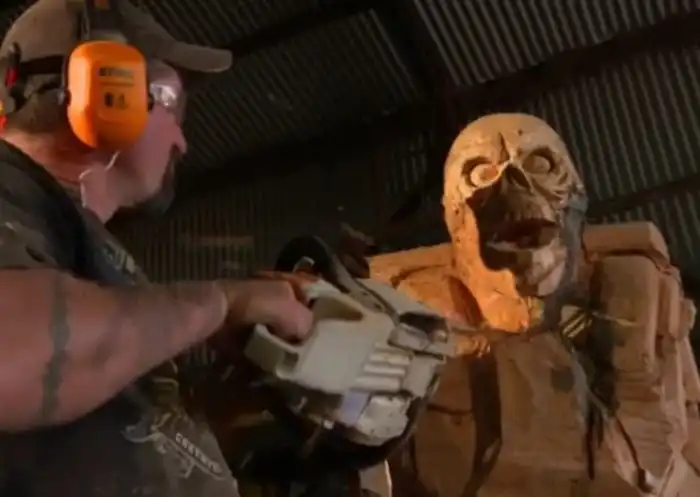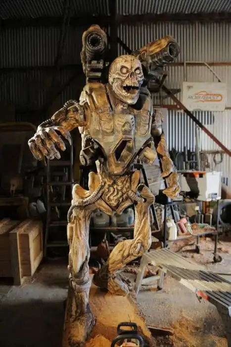 Поклонник игры DOOM потратил 150 часов на то, чтобы вырезать из дерева фигуру персонажа Revenant. Основным инструментом в работе была бензопила, однако для дальнейшей обработки использовались более точные инструменты.