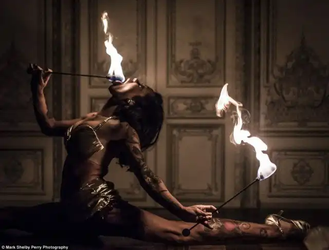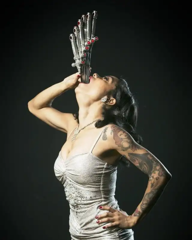 Девушка всего 158 сантиметров ростом, но вытворяет такое, что у зрителей просто дух захватывает. У нее множество тату и ярких костюмов, и сейчас Хезер со своими нестандартными навыками по глотанию мечей ушла довольно далеко от соблюдения традиций мормонского воспитания.