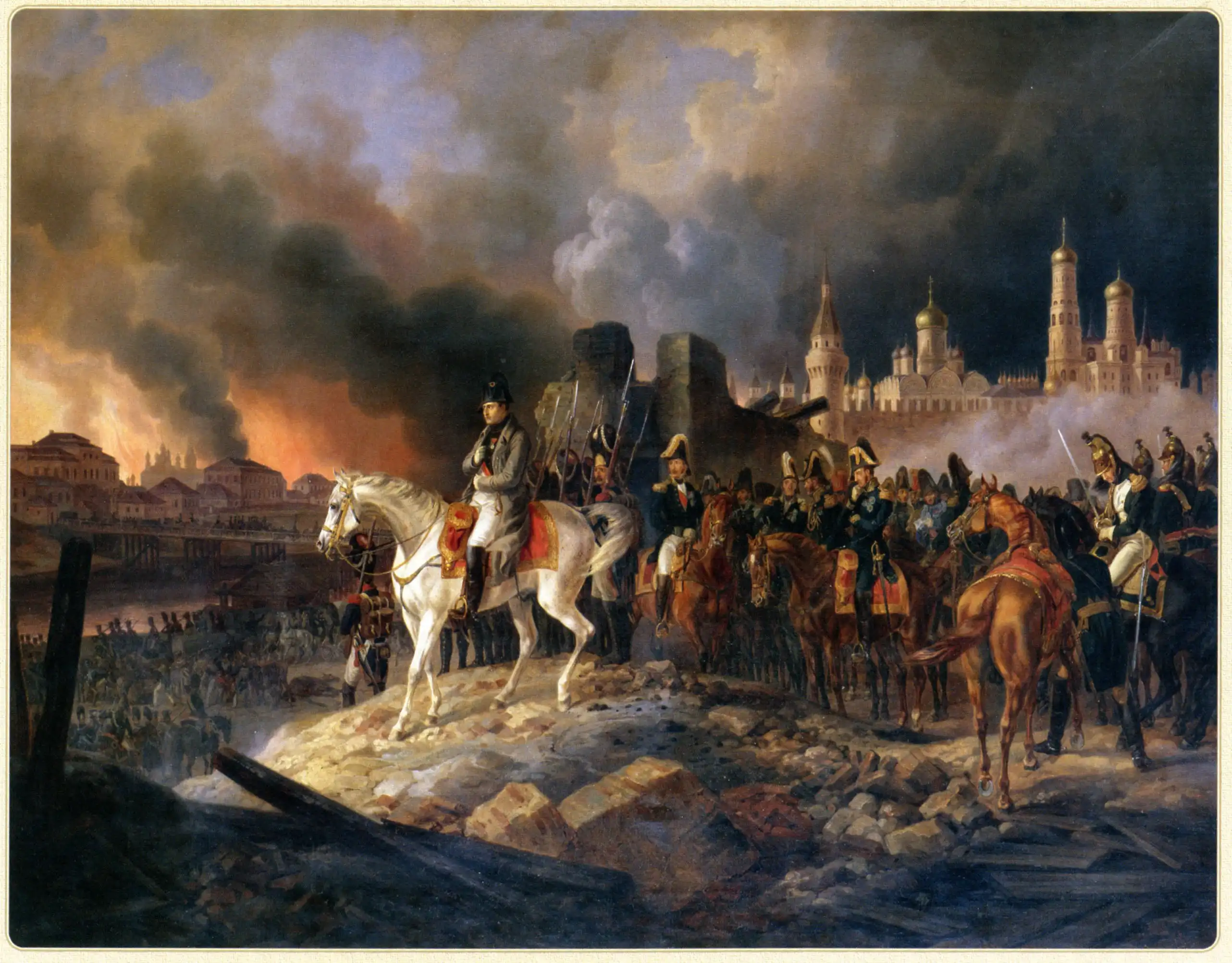 Когда Наполеон вошёл в Московский Кремль, он думал, что война окончена. Но начался пожар, ударили морозы, и вся его многочисленная армия позорно бежала прочь с награбленным добром.