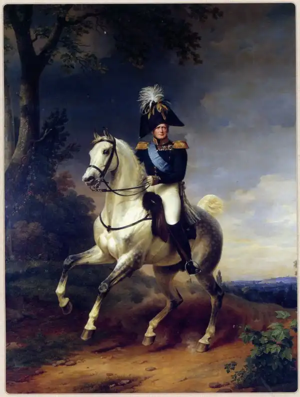 Александр I на лошади Эклипс, подаренной ему Наполеоном в 1808 году, на которой Александр I въехал в Париж в 1814 году