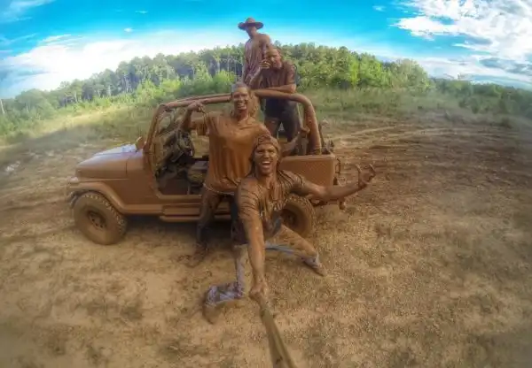 Парни, которые в детстве любили прыгать по грязным лужам. Выросли, а привычки остались.
