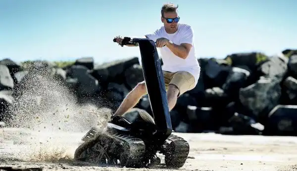 Эволюция детского самоката. Теперь он стал быстрее, мощнее, обзавёлся мотором и гусеницами.