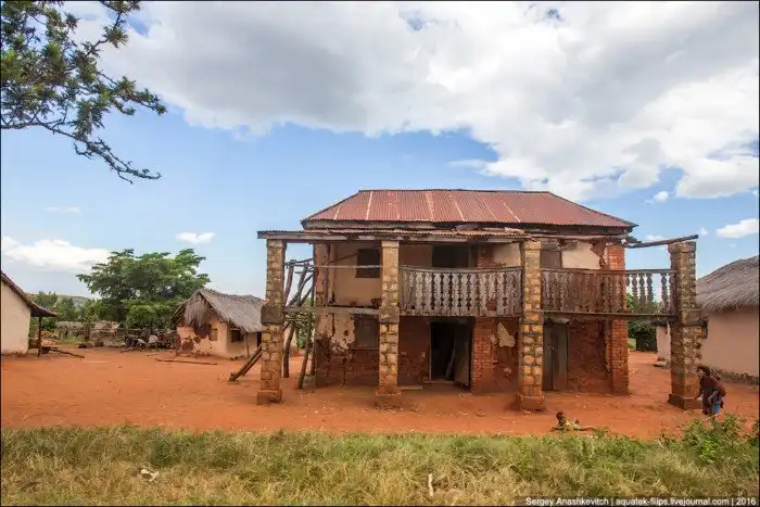Стекол в домах мадагаскарцев нет, вместо них ставни. Так что довольно часто можно увидеть дома с закрытыми ставнями. Складывается ощущение, что в доме никто не живет. На самом деле, хозяева просто куда-то ушли, закрыв дом.