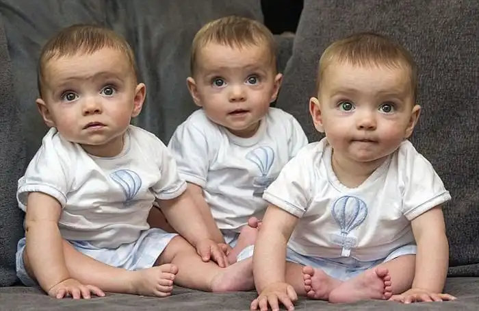 Жительница Великобритании Бекки-Джо Аллен родила однояйцевых тройняшек, которые очень сильно похожи друг на друга. Мальчики Роман, Рокко и Рохан так сильно похожи друг на друга, что их с трудом различает даже мать. Уже в момент рождения было видно, как сильно похожи малыши, отличавшиеся разве что весом тела. Бекки-Джо, которая воспитывает еще и трехлетнюю старшую дочь, говорит, что у детей разные характеры: Рохан очень шумный и любит громко кричать, Рокко обычно спокойный и непринужденный, а Роман не любит ничем делиться.