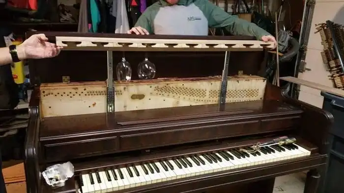 Если вам по наследству досталось старое, пусть даже нерабочее пианино, но вы не умеете на нем играть, то не спешите избавляться от него. Этому музыкальному инструменту можно дать вторую жизнь и приспособить под другие цели, например, сделать из него бар, который прекрасно впишется в любой интерьер. Пример подобного бара ждет вас далее.
