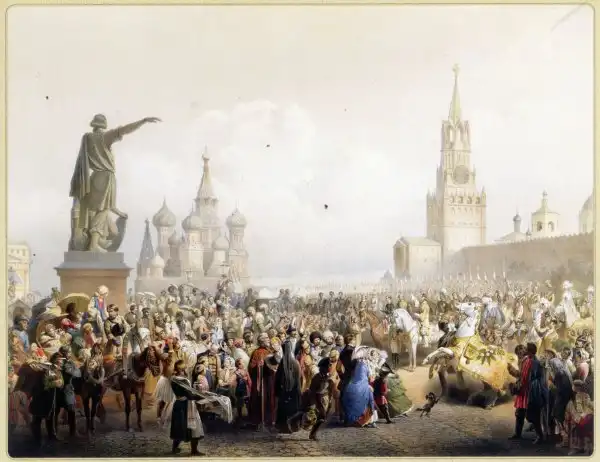 Объявление на Красной площади о дне коронования императора Александра II и императрицы Марии Александровны