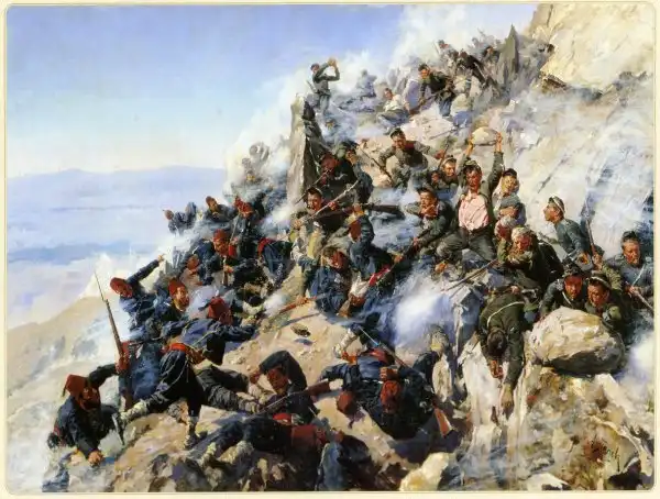 Наши войска перешли Дунай и решили двинуться в глубь Турции. Для этого нужно было пройти через перевал, названный по имени деревни Шипка, который охраняли турки. После двух дней боёв нашим войскам под командованием генерала Святополка-Мирского удалось овладеть высотой.