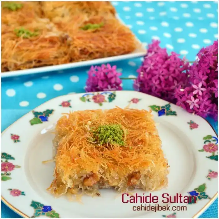 Кадаиф — совершенная и деликатная турецкая сладость, тает во рту и дает ощущение настоящего блаженства. Это еще один очень сладкий балканский десерт, основой которого выступает сахар и карамель. Так же как и пахлава, он делается из нескольких слоев тонкого теста, переложенного маслом и всякими вкусными начинками. Разница между этими блюдами состоит в том, что кадаиф сочетает в себе сладкий вкус сиропа и кислоту свежего лимонного сока. Именно поэтому такой десерт считается легким.