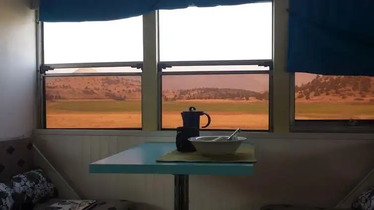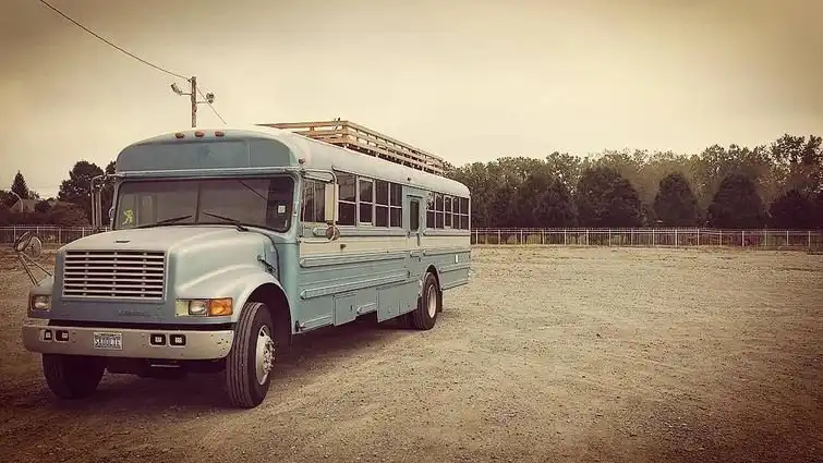 Вид школьного автобуса, после его превращения в дом