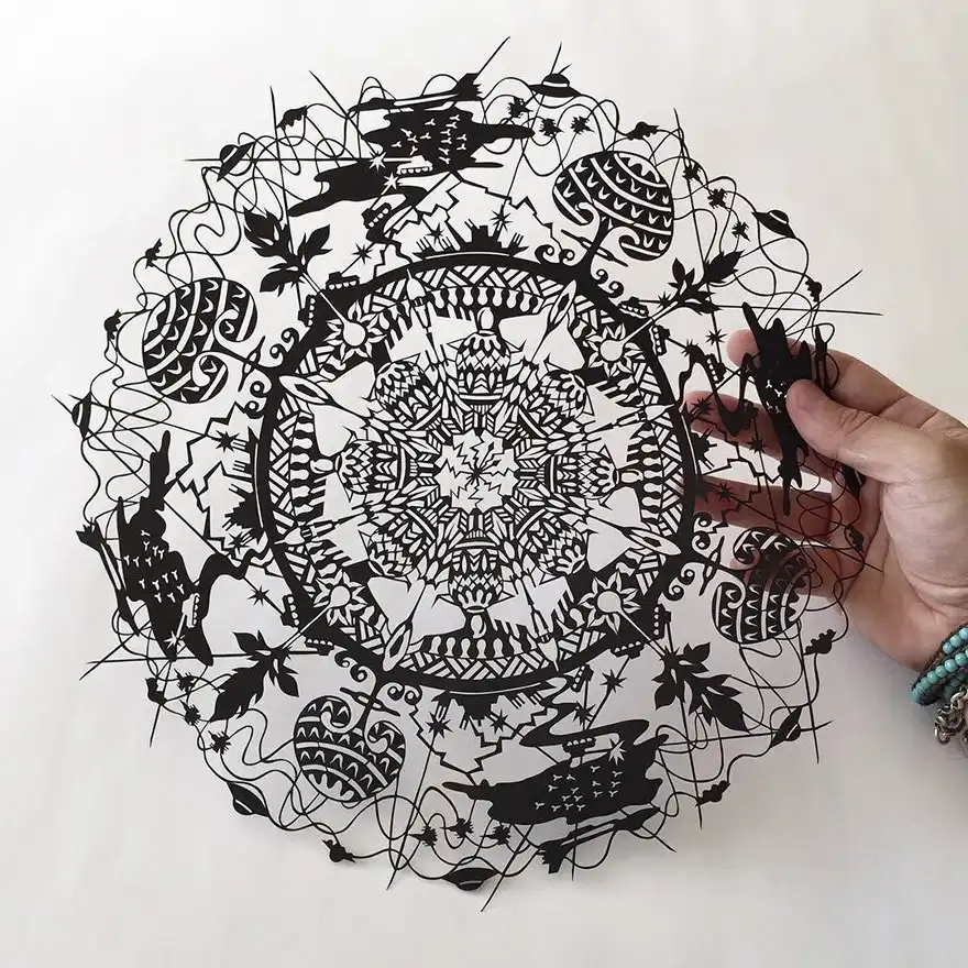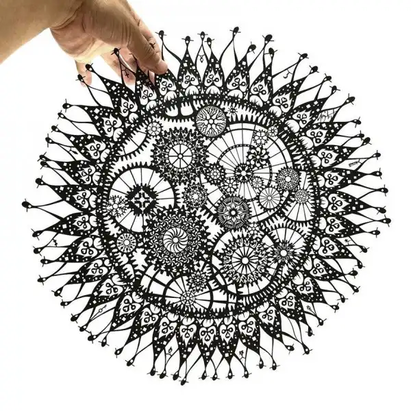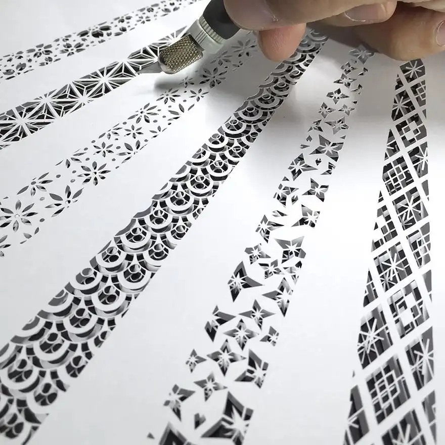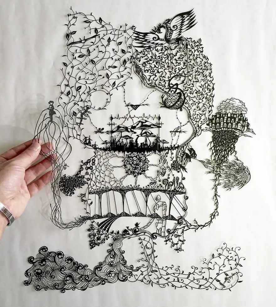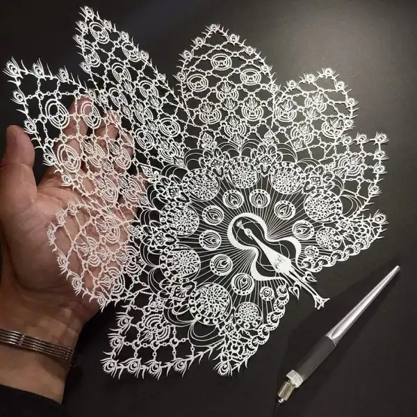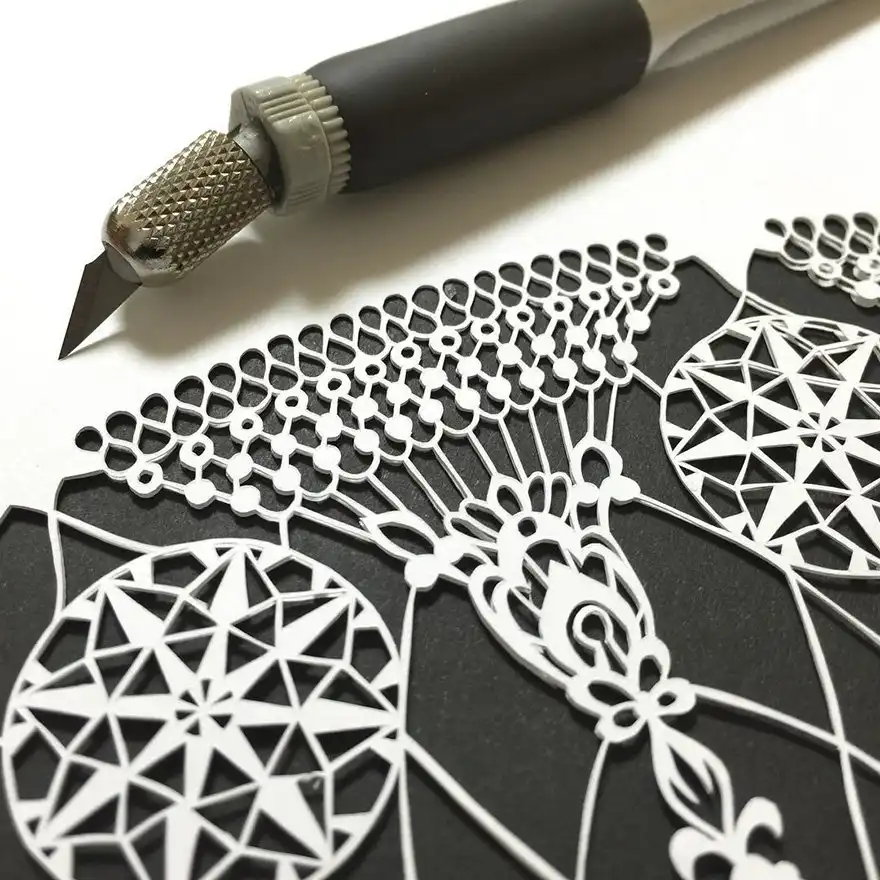 Японский художник мистер Риу создаёт вырезает ножом из бумаги невероятно сложные и завораживающие картины: