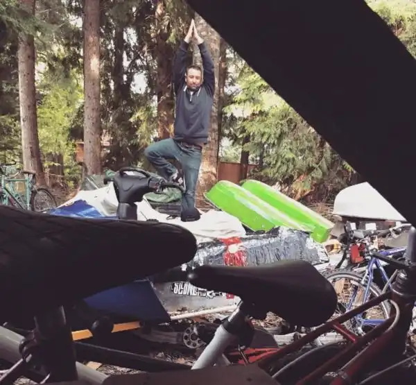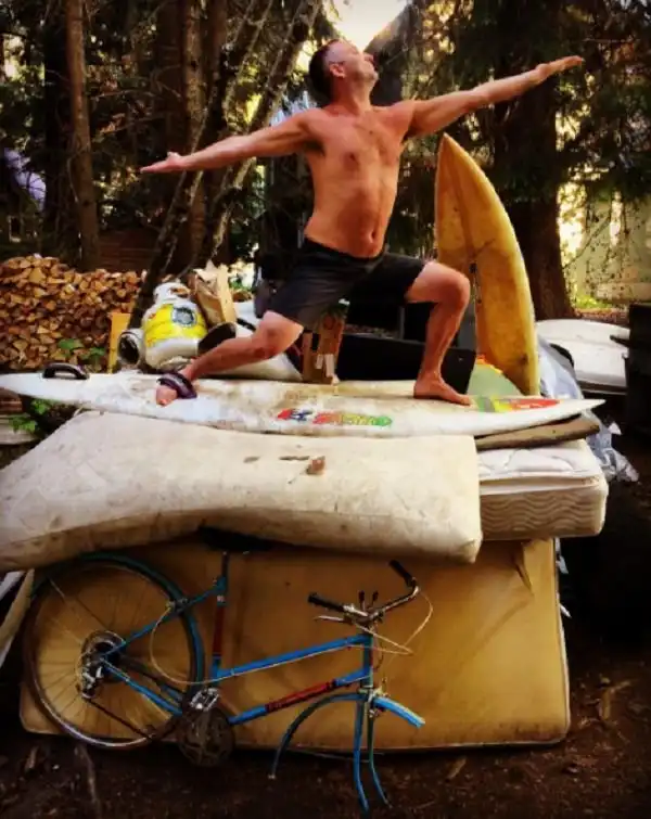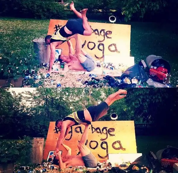Мужик путешествует по миру, чтобы заниматься йогой среди мусора