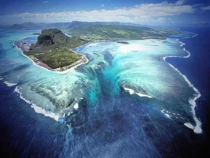 «Подводный водопад» у берегов Маврикия в Индийском океане является оптической иллюзией, формируемой залежами ила на песчаном дне.