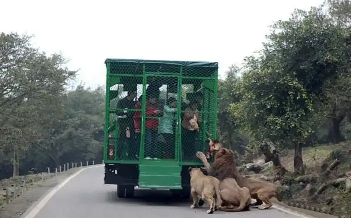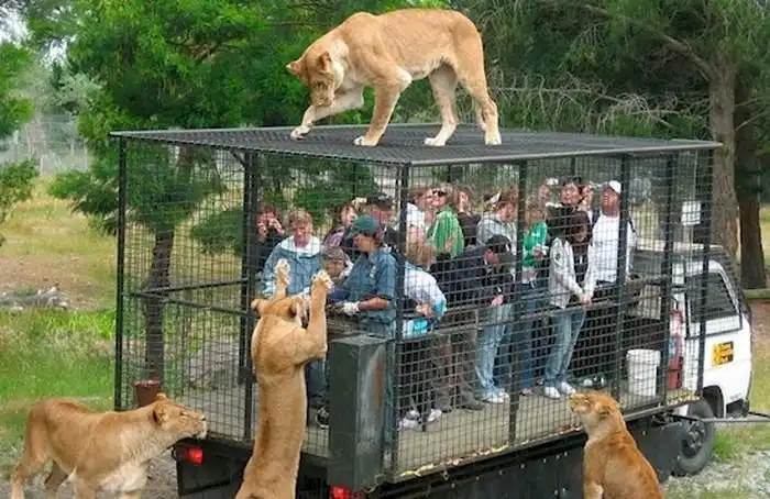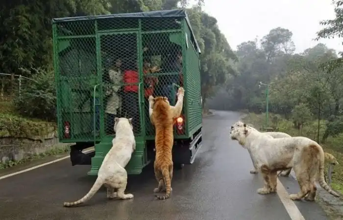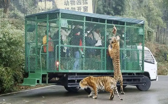 В китайском зоопарке Lehe Ledu Wildlife Zoo в клетках сидят не животные, а люди. Посетителям такой расклад очень нравится, ведь в этом случаи можно как можно ближе рассмотреть опасных хищников, находясь в полной безопасности.