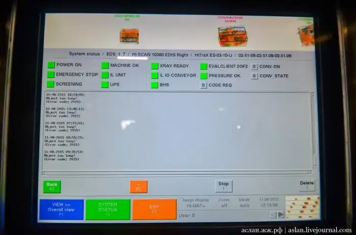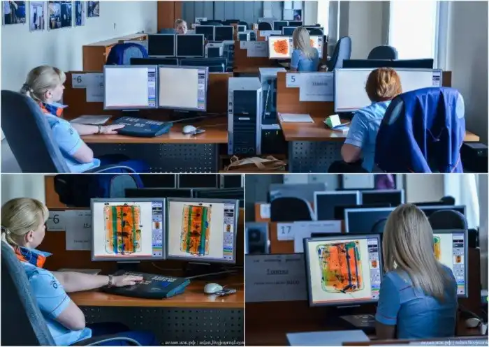 По пути багаж проверяют с помощью системы «Янтарь» на наличие опасных для перевозки компонентов. Но система выявляет потенциально опасный багыж не автоматическим образом.