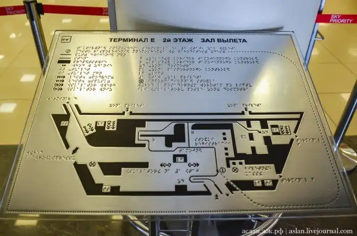 Идем дальше, по пути обнаружил схему аэропорта выбитую шрифтом Брайля, круто!