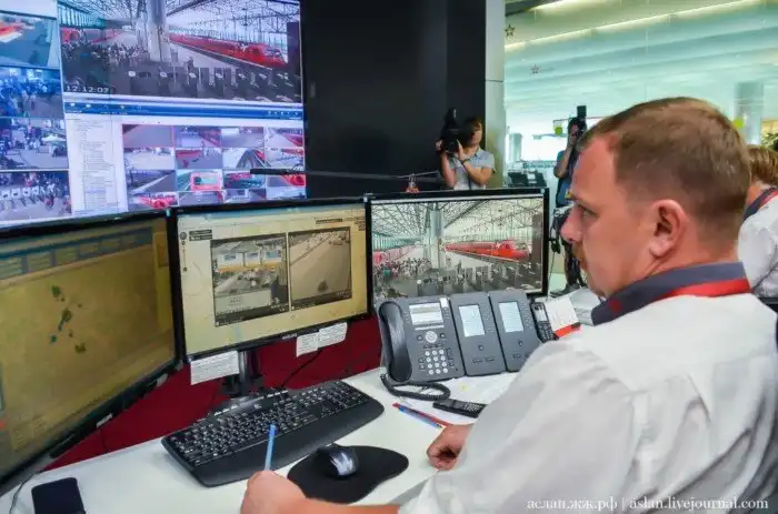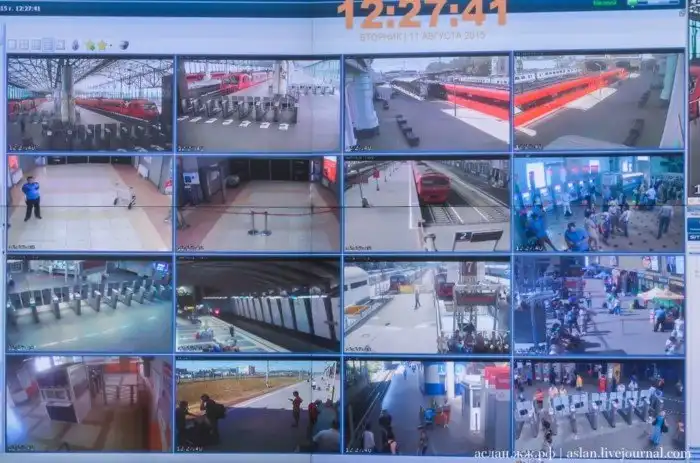 Например, камеры оснащены функцией реакции на бегущего человека. Если скорость какого-то человека выше средней скорости толпы, то видеокамера в которую он попал, мгновенно реагирует и выводит своё изображение с этим человеком на центральный монитор, чтобы сотрудник безопасности мог внимательнее рассмотреть, что там происходит и принять нужные меры, например, позвонив в полицию. Данные со всех видеокамер хранятся 1 месяц.