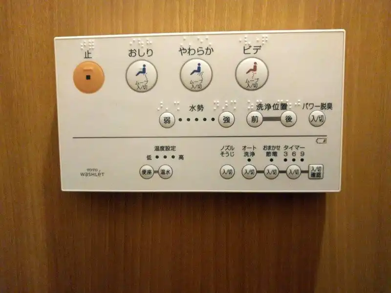 У самых продвинутых моделей кнопки расположены на отдельном пультике на стене. Не спрашивайте меня, что они делают. Мне воображения не хватает на разные унитазные функции, которые могут за ними прятаться. Отдельно стоит заметить индикатор уровня батарейки на этом пульте.