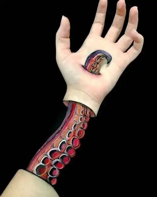 Художник, специализирующийся на боди-арт иллюзиях, создает великолепные иллюзии на своей руке. С помощью рисунка, правильно подобранного ракурса съемки, оптимального освещения и минимального фотошопа ему удается добиться впечатляющей реалистичности, заставляющей зрителя практически поверить в то, что видят его глаза.