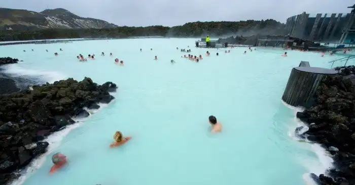 Голубая Лагуна в Исландии привлекает множество туристов: недалеко от Рейкьявика, огромные площади, возможность погреться в горячей и полезной воде при обычно прохладной температуре снаружи. Интересно, что купальни эти не природного происхождения: вода в них самая настоящая термальная, а вот комплекс вместе с «озером» является творением рук человеческих, отлично имитирующем природные ландшафты.