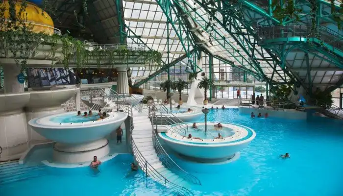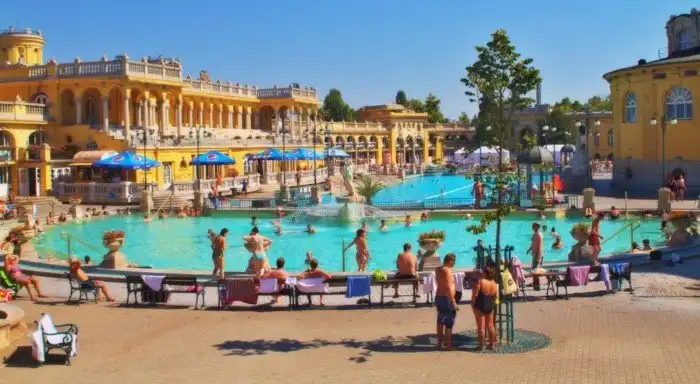 Самые знаменитые купальни Венгрии — бальнеологический комплекс Сечени — находятся в Будапеште, рядом с парком Варошлигет. Построенные в 1913 году, эти купальни напоминают настоящий дворец как снаружи, так и изнутри. По всему периметру здания расположены небольшие купальни с водой разной температуры и состава, некоторые из них оснащены джакузи, а также различные сауны и бани, отличающиеся температурой и влажностью, имеются также ароматические сауны. Во внутреннем дворе имеются два просторных бассейна, в одном из них вода достигает 34–36 градусов (находиться в нем больше 20 минут не рекомендуется), в другом — около 30–32. Частая картина, которую можно увидеть в Сечени: пожилые люди собираются прямо здесь, в открытой купальне, в любое время года для игры в шахматы. Для молодежи есть свое развлечение: раз в неделю купальни открываются в ночное время для проведения одной из самых крупных вечеринок Будапешта — Сечка (Szecska).
