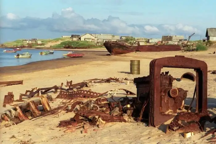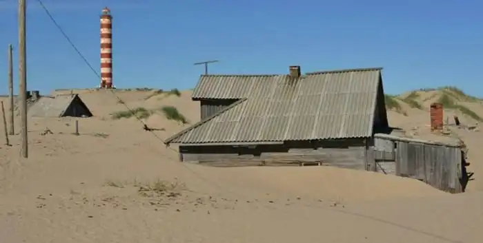 Далее предлагаем взглянуть на утопающее в песке село Шойна, что находится на берегу Белого моря в Ненецком автономном округе. Из-за того, что раньше рыбу здесь ловили тяжелыми тралами, растительность на дне моря была уничтожена и теперь намываемый морем песок превращается в высокие дюны, которые потом разрушаются под действием ветра, засыпая постройки. В селе нет почвы, передвигаться здесь можно только не вездеходах, а связь с миром происходит по воздуху.