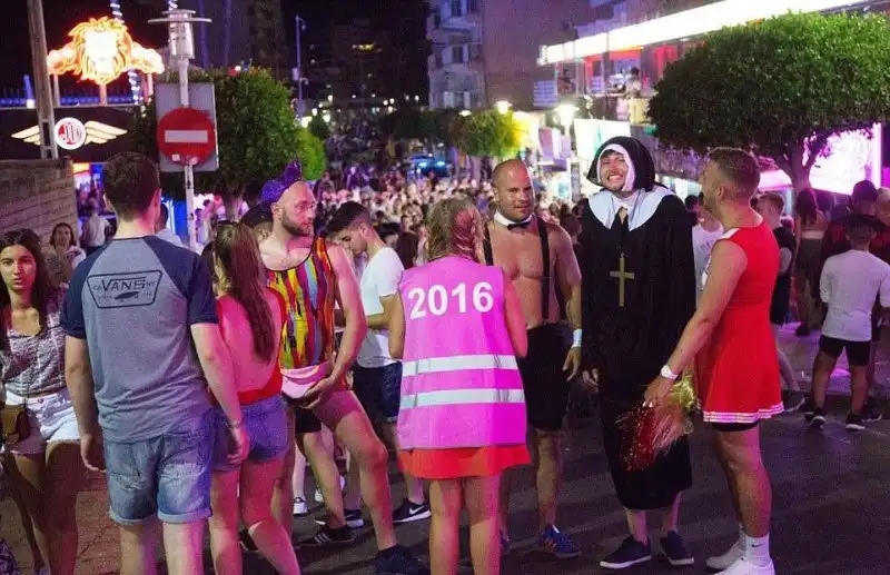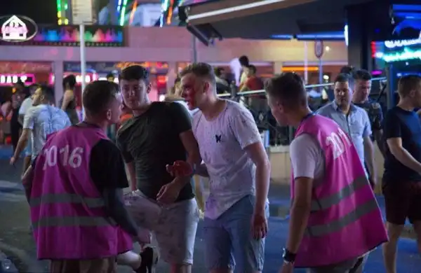 Тысячи молодых людей из Великобритании стекаются в Магалуф (Испания) каждое лето, чтобы насладиться ночной жизнью и солнцем. Но ведут они там себя не очень аристократично. Молодые люди злоупотребляют алкоголем, засыпают прямо на тротуарах и в уличных кафе, устраивают драки, некоторым приходится вызывать скорую помощь. И хоть в силу вступили новые законы, по которым за распитие спиртных напитков в общественных местах и нахождение топлес на пляже и в баре полагается штраф от 100 до 600 евро, это мало кого останавливает. Представляю вашему вниманию фотоотчет о том, как отдыхают цивилизованные европейцы на курорте.