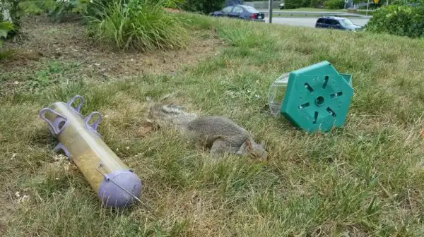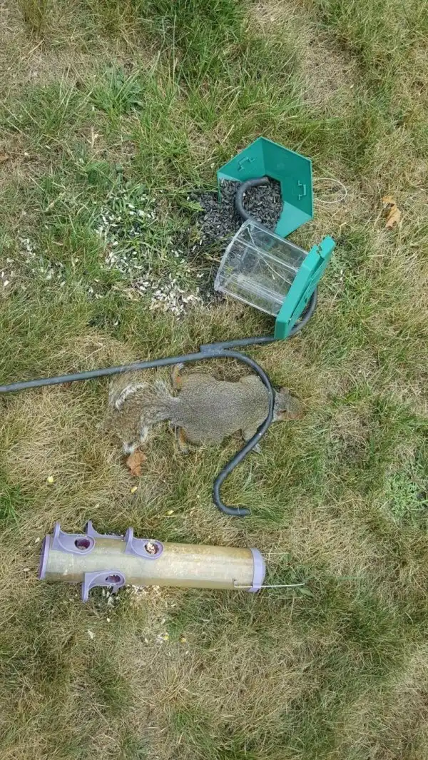 Добродушный чувак установил во дворе своего дома кормушку для белки. Только вот закрепил он ее не на дереве, а на какой-то металлической подставке. Рано или поздно хлипкая конструкция должна была упать, но никто не мог предположить, что именно так.